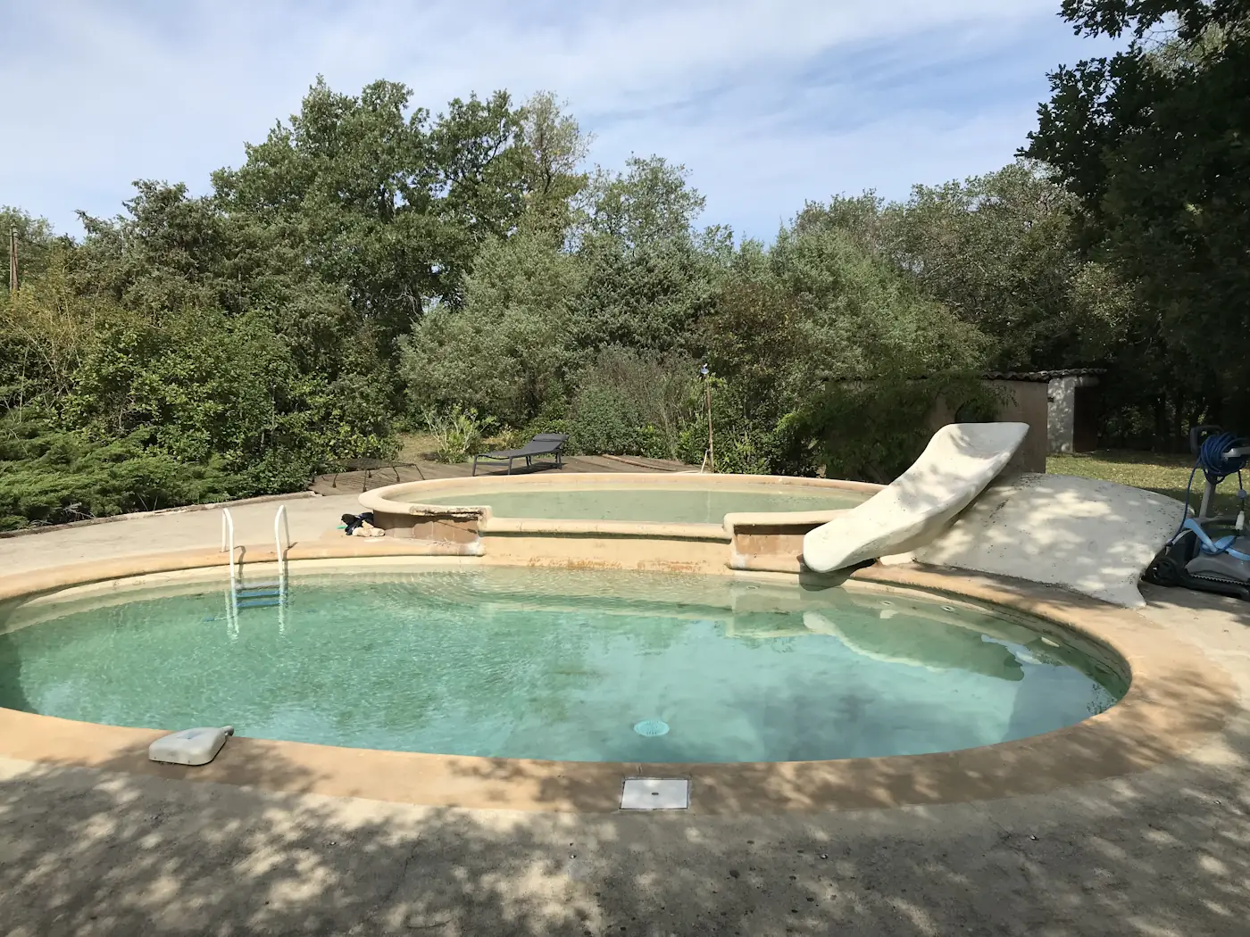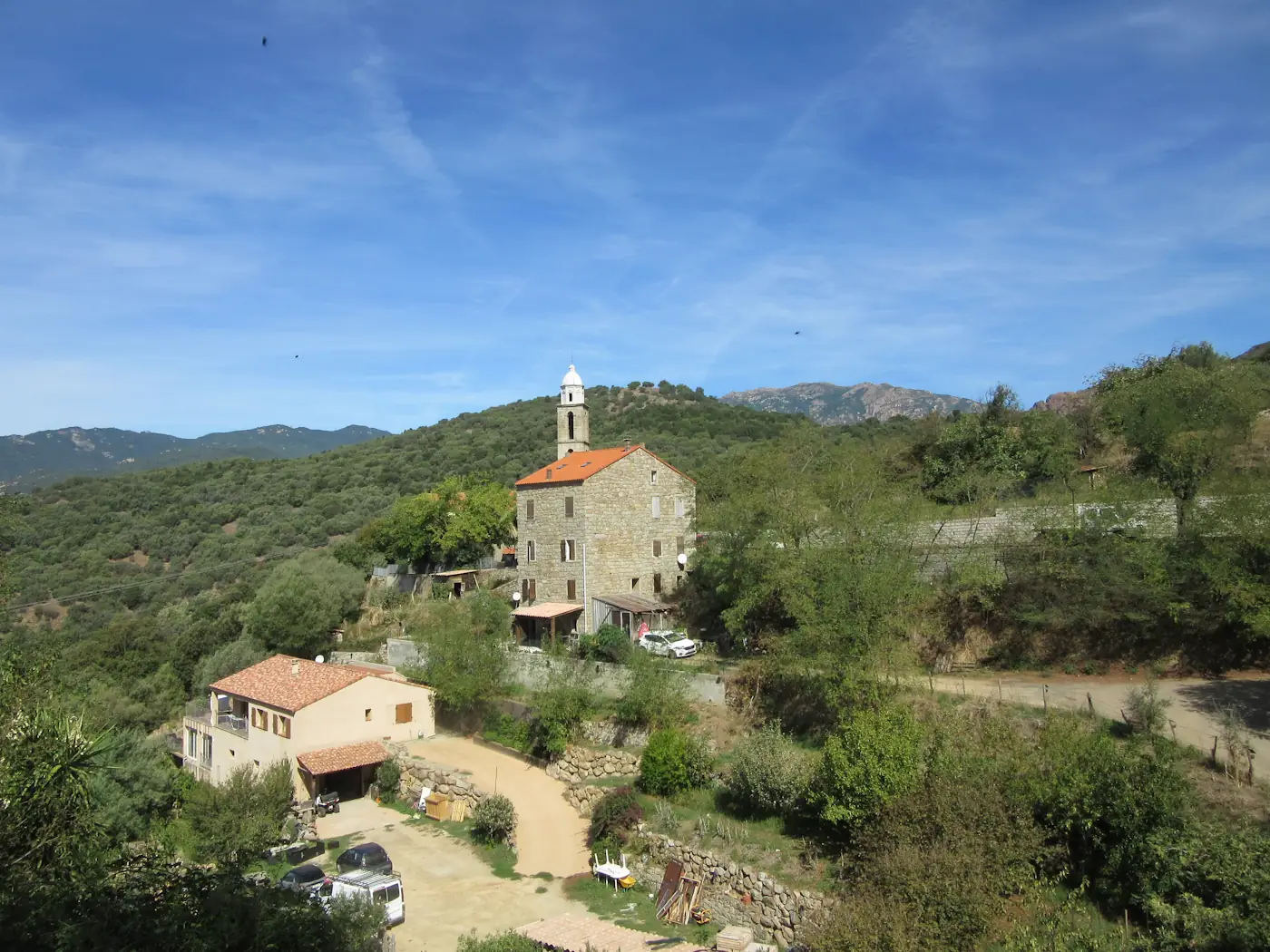 Leaving Louis in the capable hands of Sophie, who had kindly agreed to housesit for us and test out our new guest quarters, we set off for a week in Corsica. We went with Paul & Fabienne, and made an overnight stop-over at Françoise’s lovely new home in the Gard on our way down. She’s doing well and is very much settled into her new home. Unfortunately she’s having trouble finding work, or else she would have joined us.