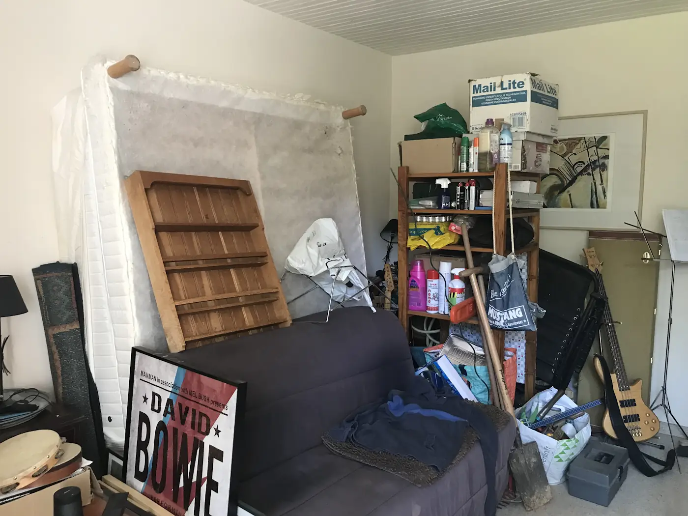 The atrocious weather that greeted us for our first week back gave way to a far more pleasant run of sunshine and mild temperatures. With the log shed rendered, we were at long last able to empty out the guest bedroom of all its crap and convert it to its intended form of gym/music room.