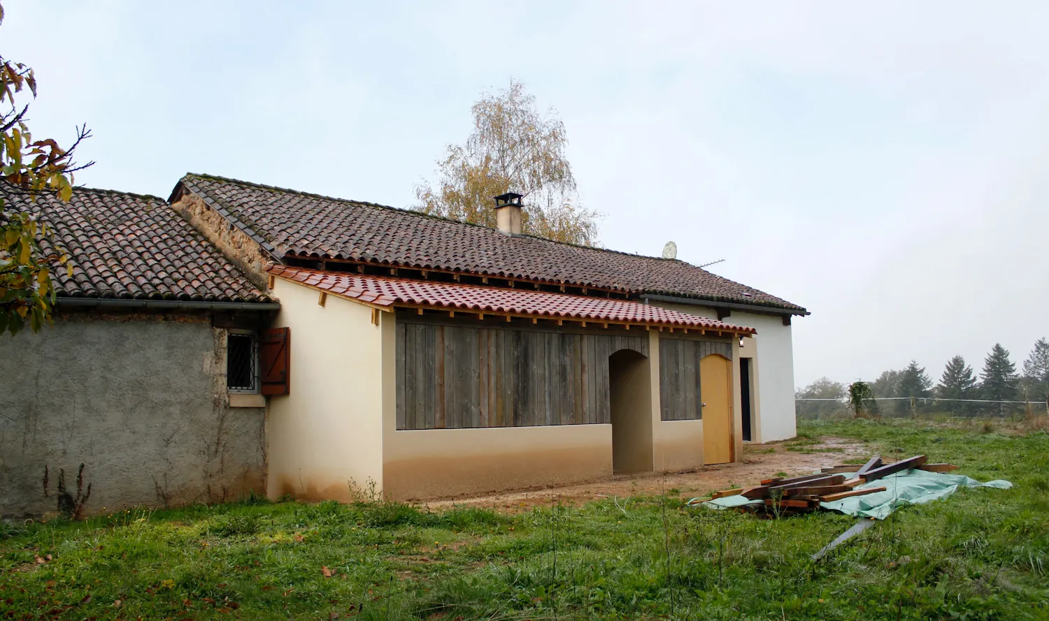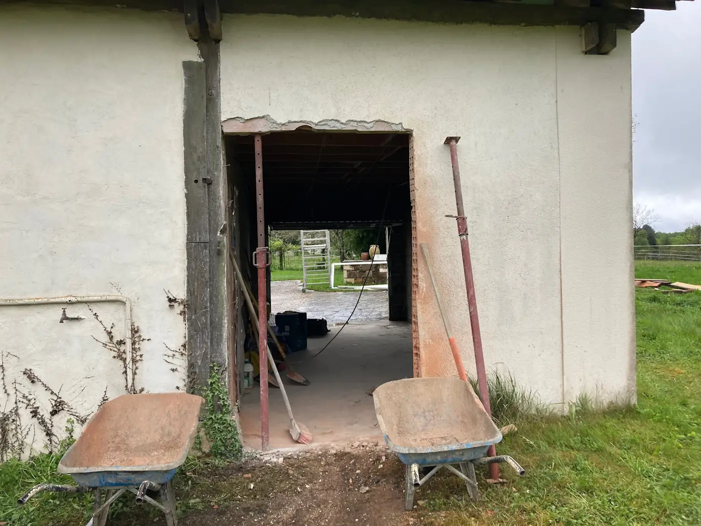 After a week of perfect weather, it was tough to return to the dreary drizzle of the Dordogne, particularly as we were back at work the next morning. This was in contrast to the masons, who were clearly going for the award for for most ever no-shows. They had a hard deadline of Friday 26th to finish everything so that we could take delivery of our wood. As the week ticked by, it seemed likely they’d miss this too. In the end they showed up the day before and, having failed to secure a machine, proceeded to render the interior of the log shed by hand.