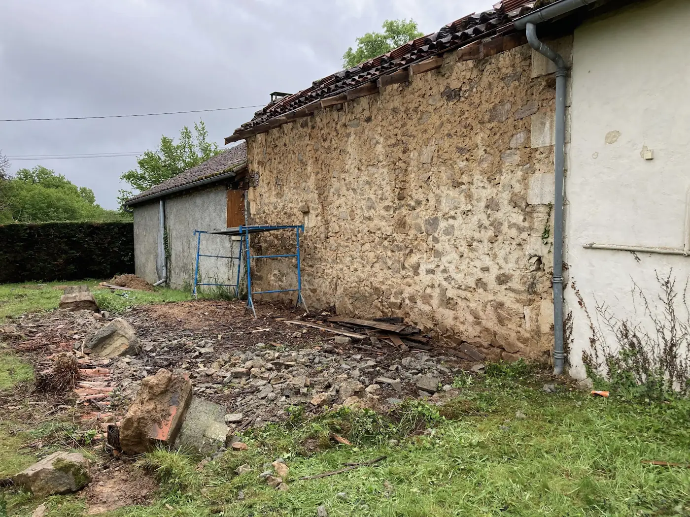 The next day was the last of Jan’s trip and we took her back to the train station, calling in to see the architect and the kitchen-maker en route so we could pick out our cabinets. A few days later, we began a major clear out in readiness for the works to begin. We pushed the main guest bedroom bed up against the wall and then crammed the contents of the back bedroom in there too. The garage and loft required numerous trips to the déchetterie, and the log shed took several tedious hours of work but we finally got everything cleared out in time.
