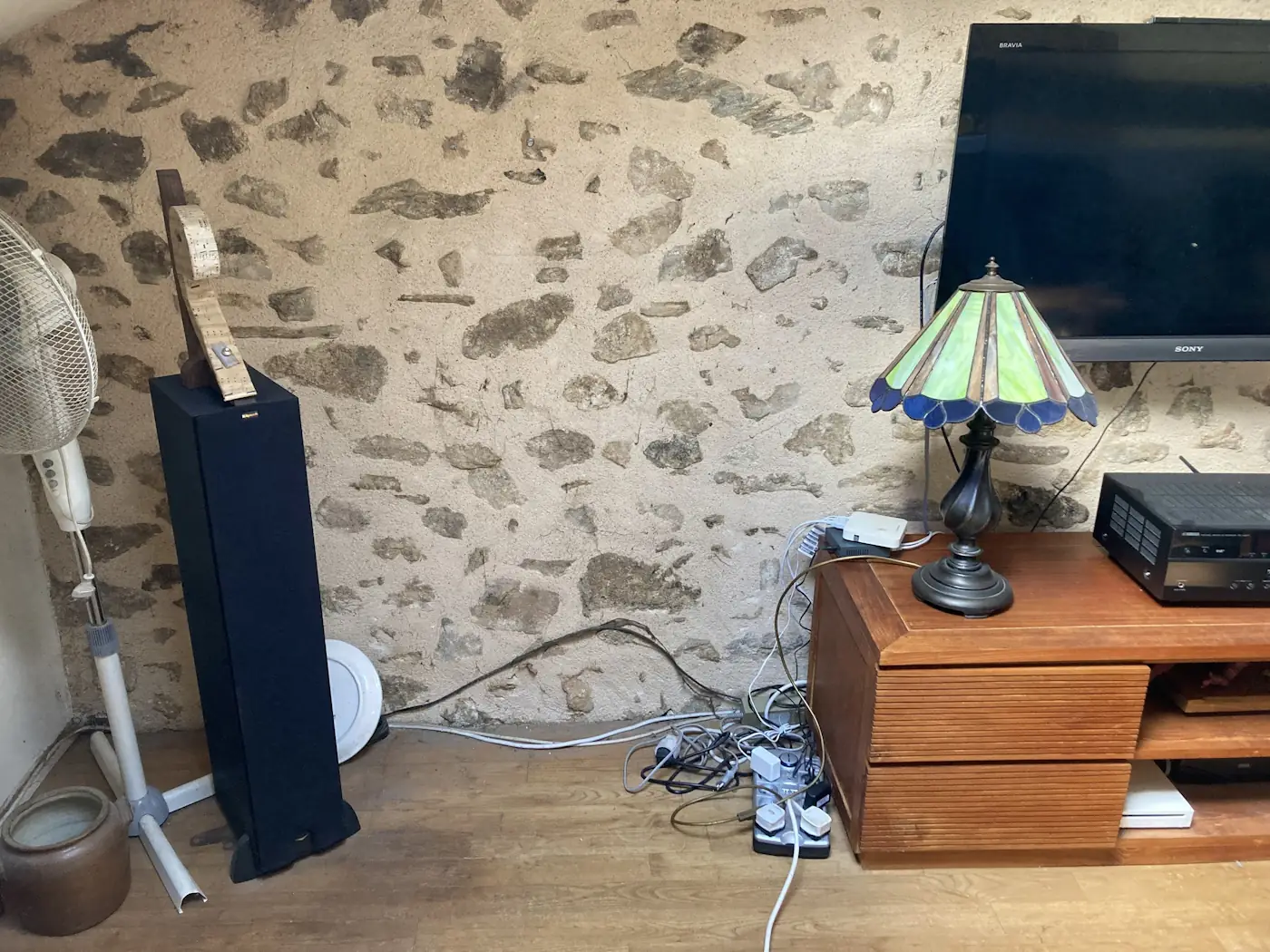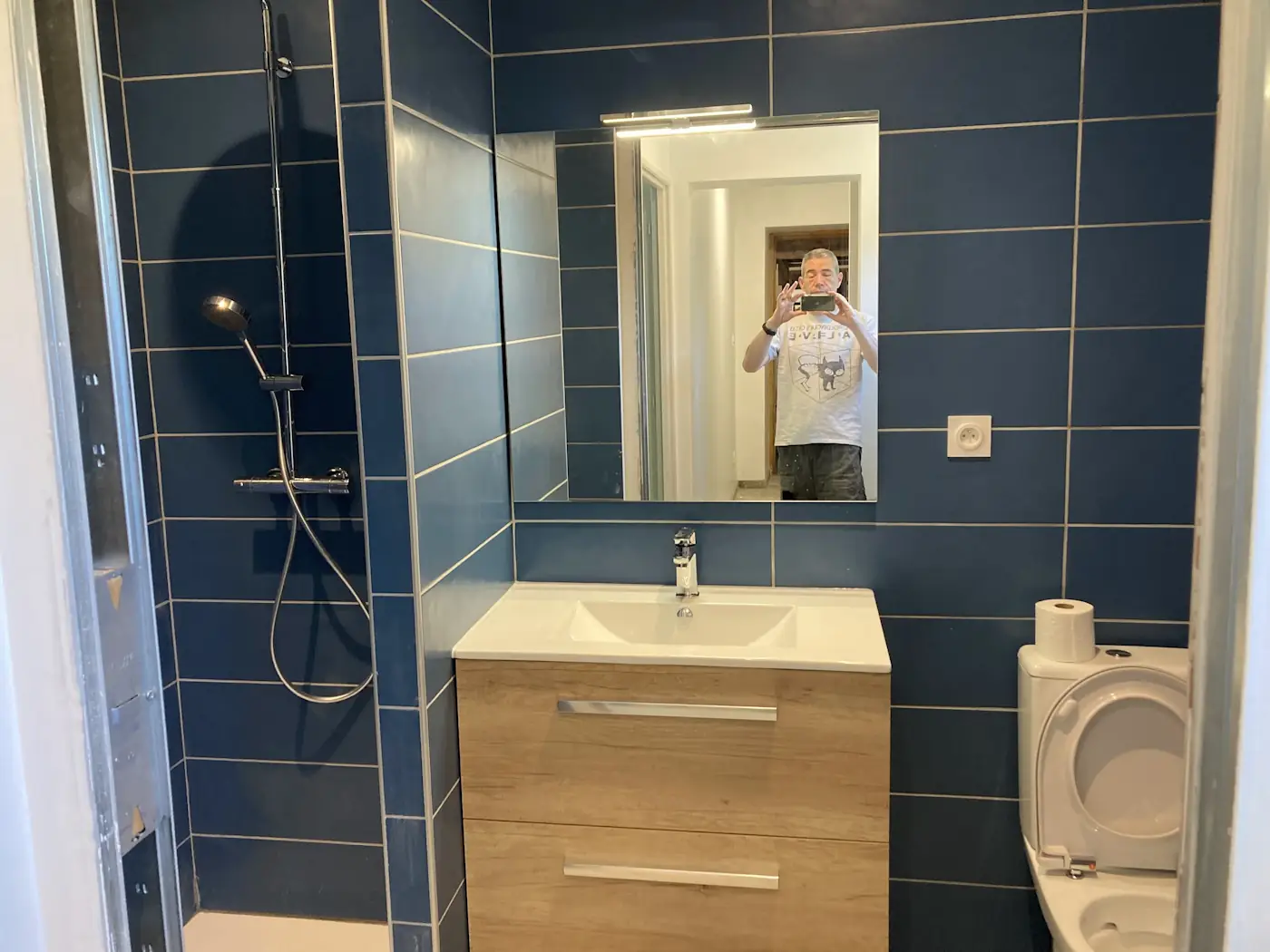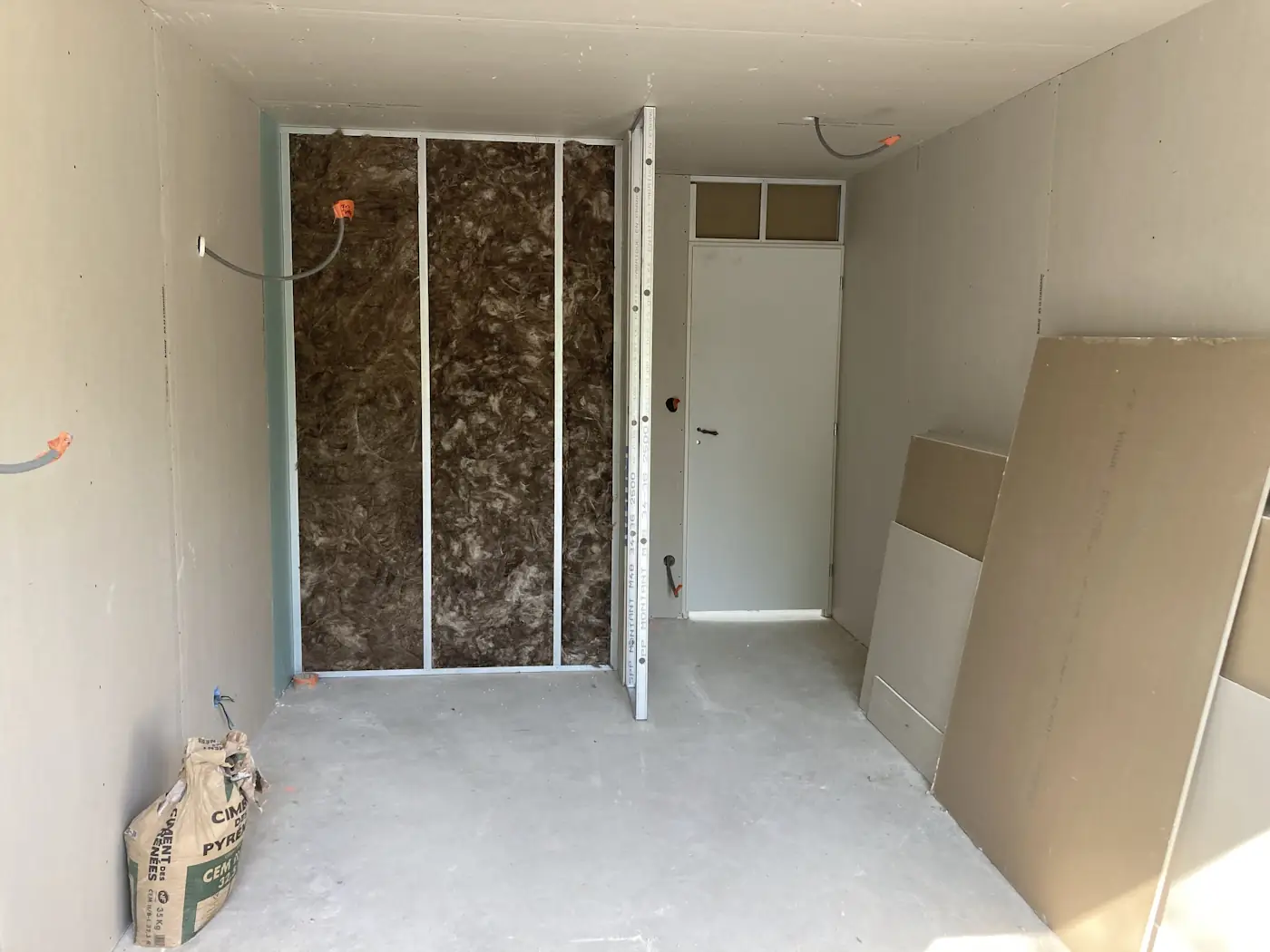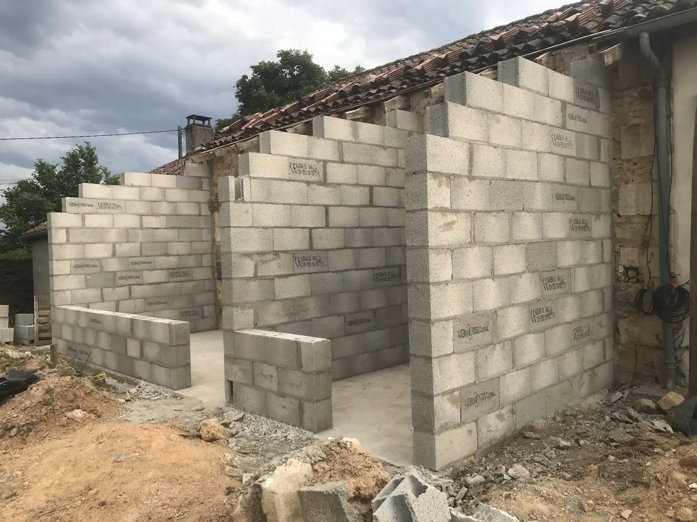 That weekend was a long one, with La Fête Nationale falling on the Monday. Benoît came on Saturday to tile the bedroom, then again on Monday to finish off. Despite it being a holiday, the masons returned too and for a minute we dared to hope they were going to put in a full week, but they vanished after just two days. Meanwhile, the painter worked on the lounge opening and other finishing touches.