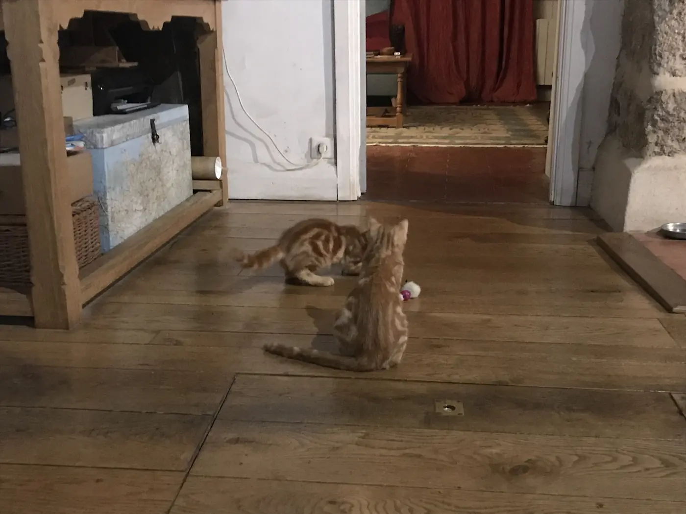 This was also the week that Mum and Dad collected their two new cats from Isabelle. As their fosse installation was looking likely to take a few weeks, they decided not to wait till they had moved into the barn. The still-nameless wee bundles were soon both entertaining and exhausting them. We got to meet them the following week when we went over for a cheeky mid-week meal. They are beyond cute.