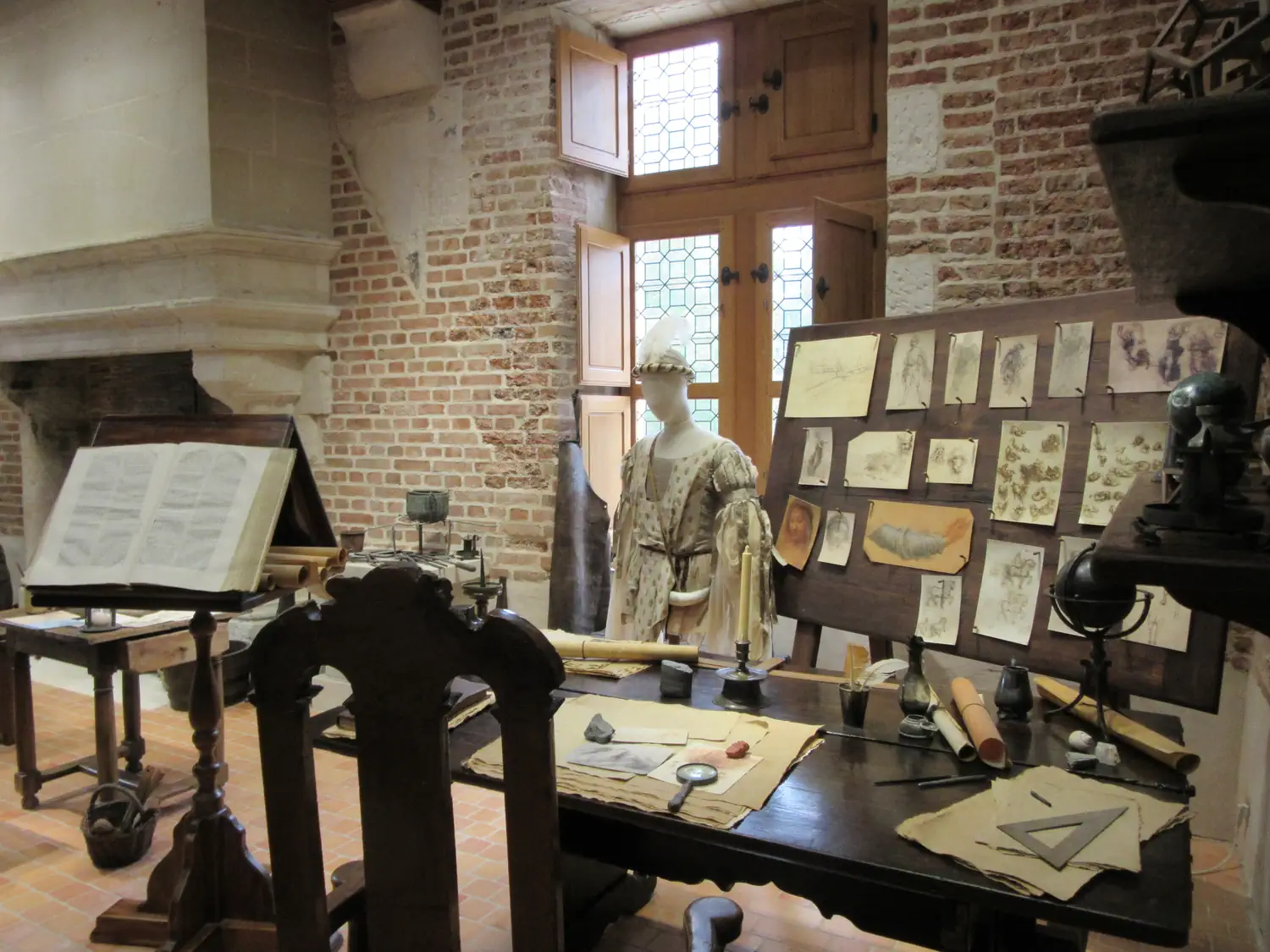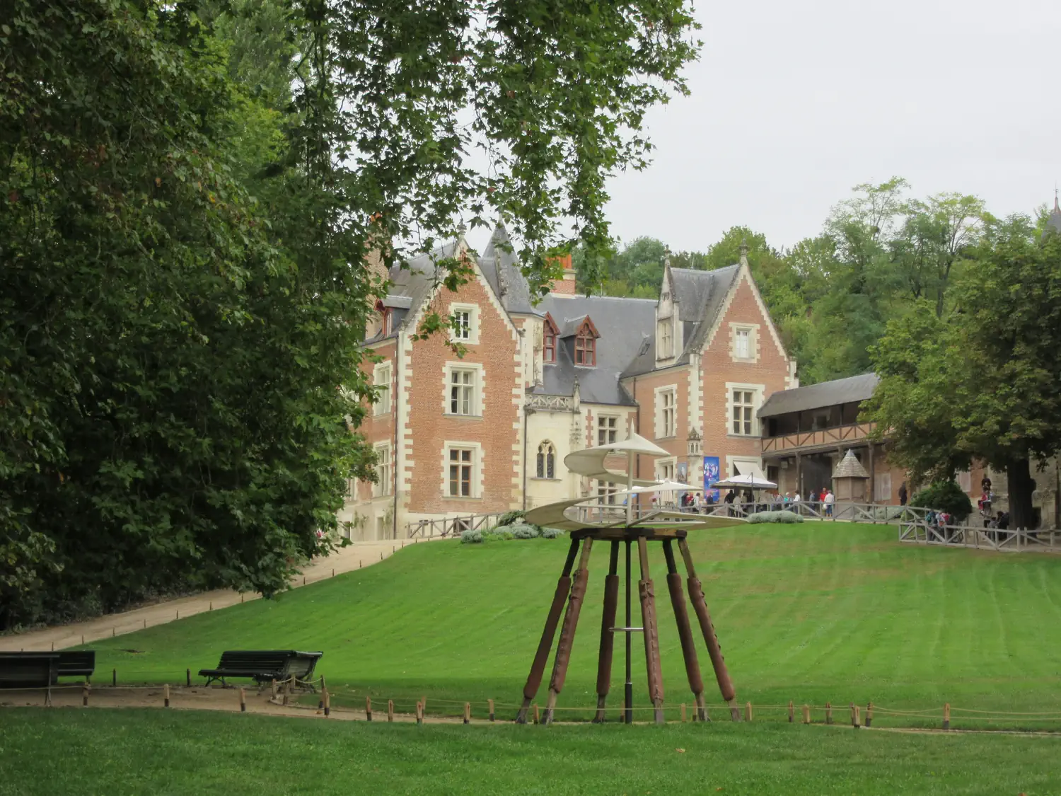 For dinner that night, we decided to have something other than French and ended up with Thai. It was called “franco-thai”, but the only “franco” we could find was the lack of spiciness. The food was very tasty nonetheless, and we continued to sample the local wines. We didn’t bother going out that night after dinner, and watched some telly at the hotel before turning in. We checked out after breakfast and headed to Amboise, a town 20k up the Loire river. The town has two chateau, and we visited the Clos Lucé where Leonardo di Vinci spent his final years. The visit starts with a tour of the chateau itself including the rooms where he lived. There is also his study with his notebooks and curios, and the studio where he painted. The last rooms contain models of his inventions with explanations of his ideas.