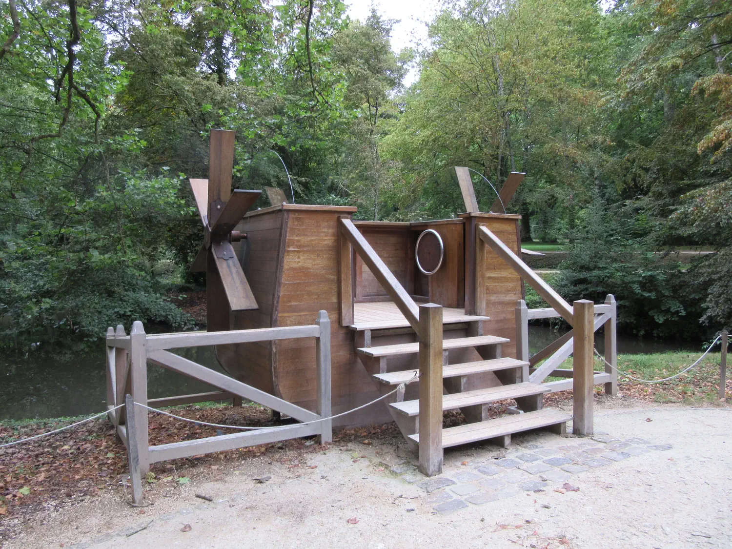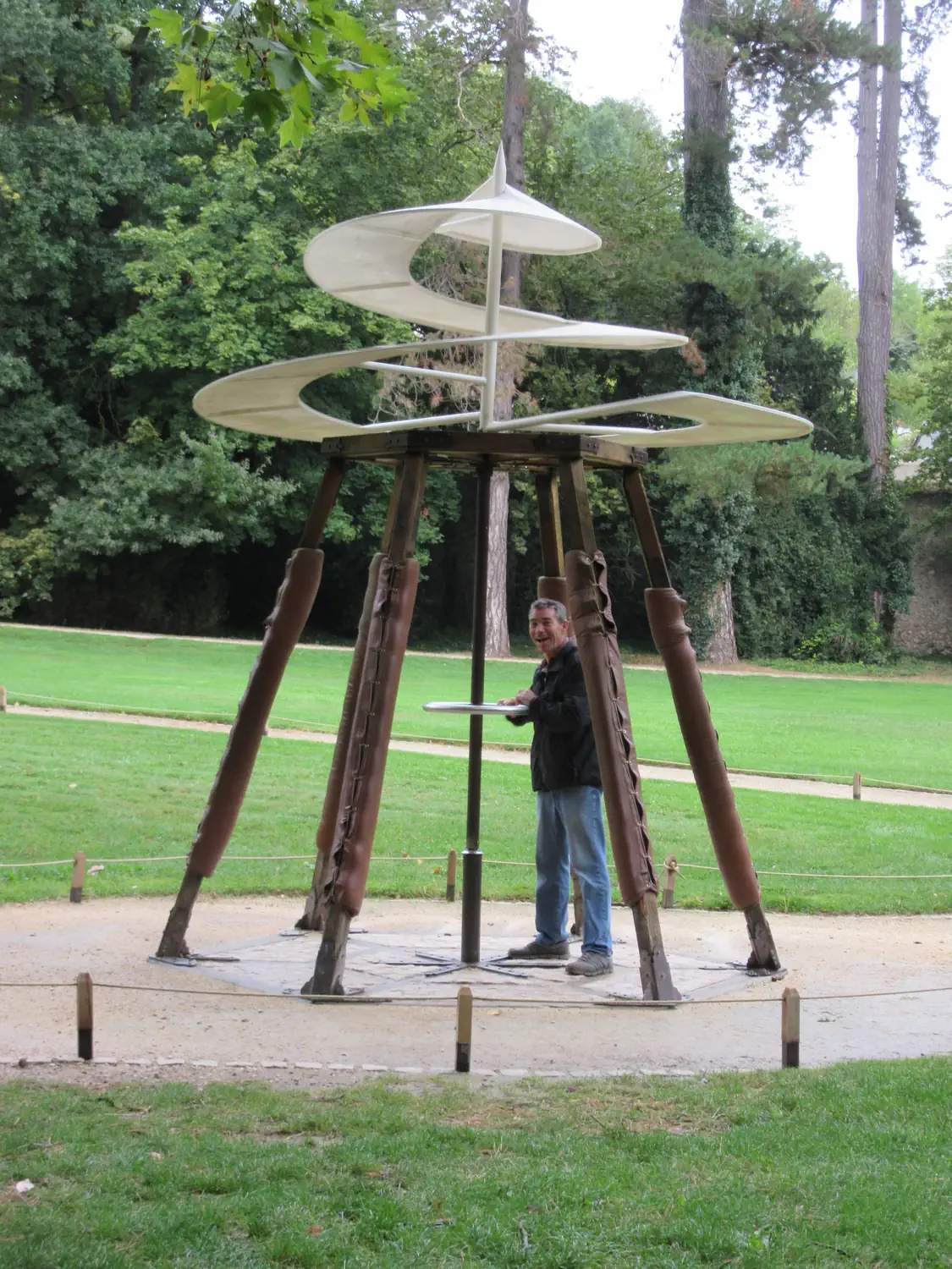 The visit continues outside in the surrounding gardens. Here they had the same inventions but on a much larger scale, some of them interactive. After strolling around for a bit, we had a bite to eat and then headed back to the car. The rain had held off until then, but we had it for the entire journey home. We first stopped at Chateau Clemonceau which spans the Cher river, but you had to pay to see it and didn’t want to spend any more time. So we headed home and arrived around 5:00. We went out for dinner that night at the Hotel de France, compliments of Milhac Loisirs. Jo decided to celebrate her retirement, and treated all the members to dinner. Partners were invited but had to pay a reduced price. The meal started with an champagne-based apero, then moved on to a fish course, done in a curry sauce. It was spicier than the Thai food we had the previous night, and I figured it would be too much for the French, but they all enjoyed it. The main was pork, and they served magret to Dad since he doesn’t eat it. Dessert was a praline pudding and small chocolate tart. We were fairly tired, so were one of the first to leave.