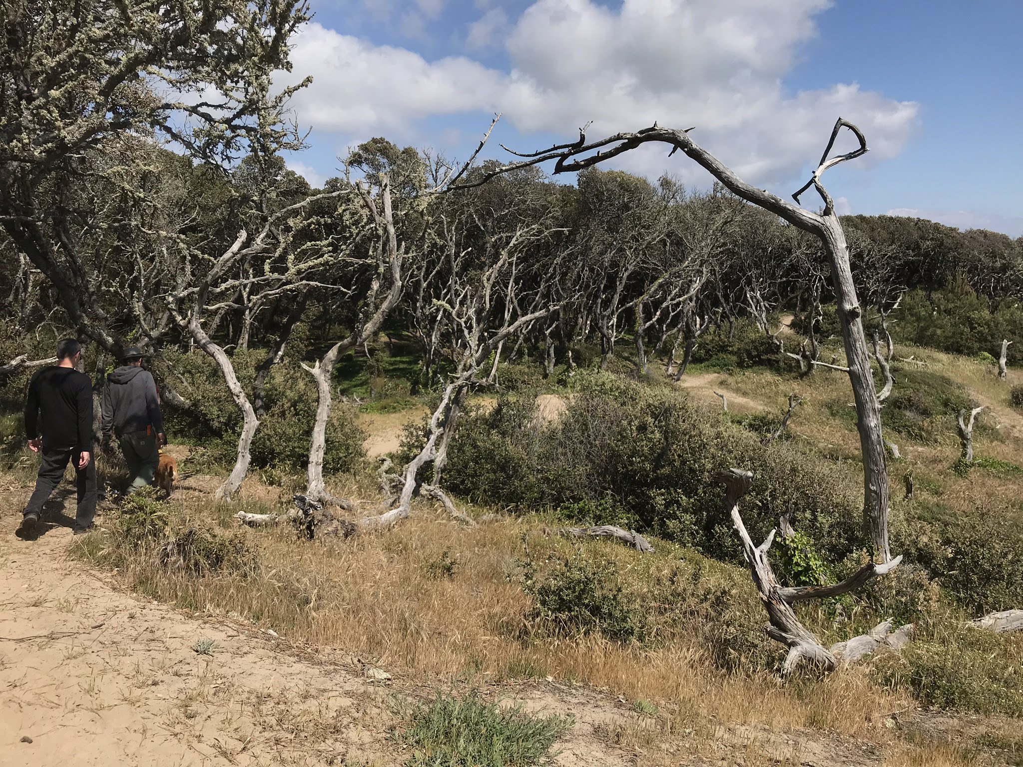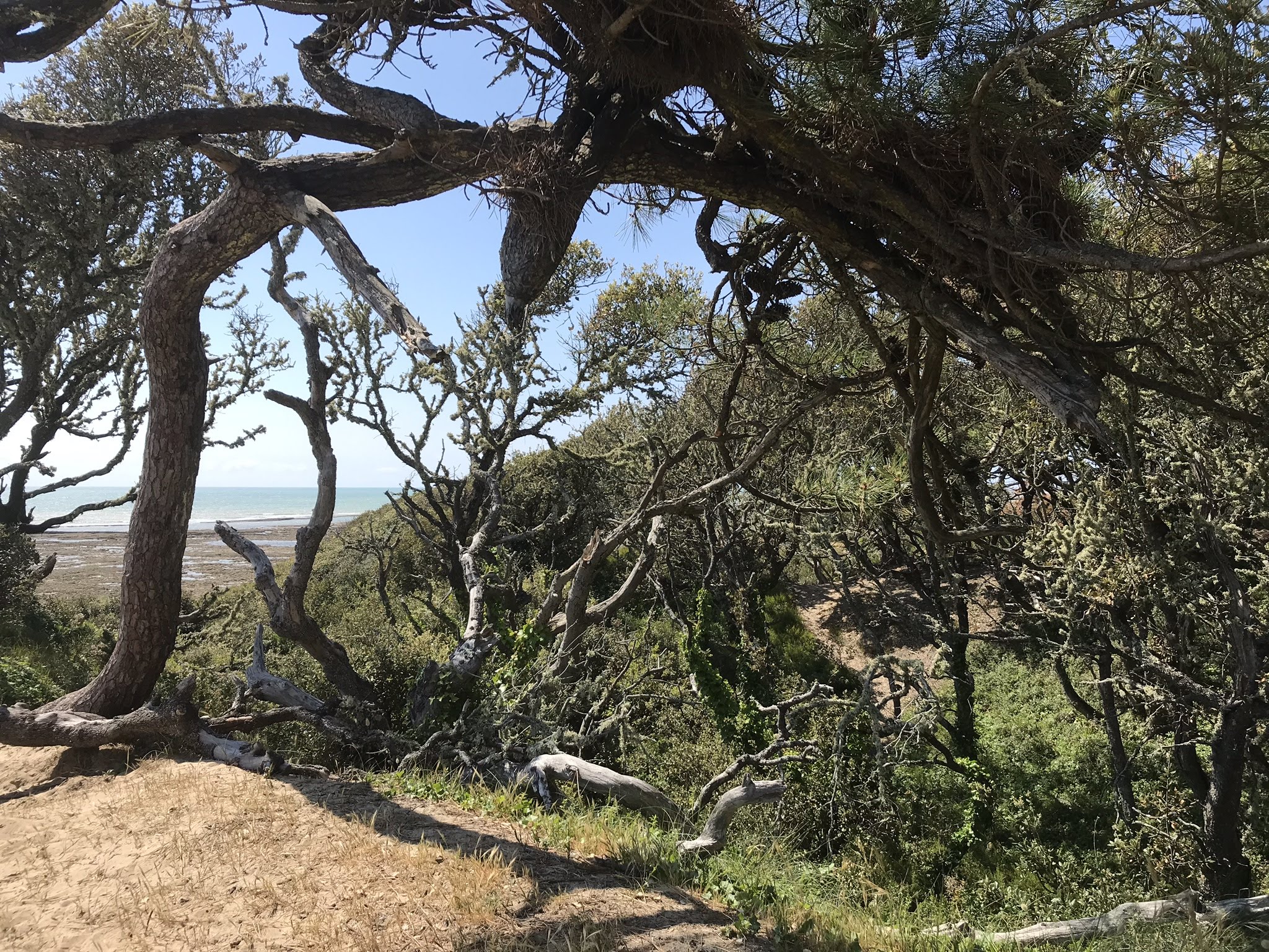 After lunch in the afternoon we went out for a stroll that partly took in the beach and partly threaded through a beautiful coastal forest of oak and pine. The wind on the island stops them growing too tall, so instead they assumed very twisted shapes. That evening was a repeat of the previous one, barring the meal which was fish and home-made mayo for everyone else, and chicken for me.