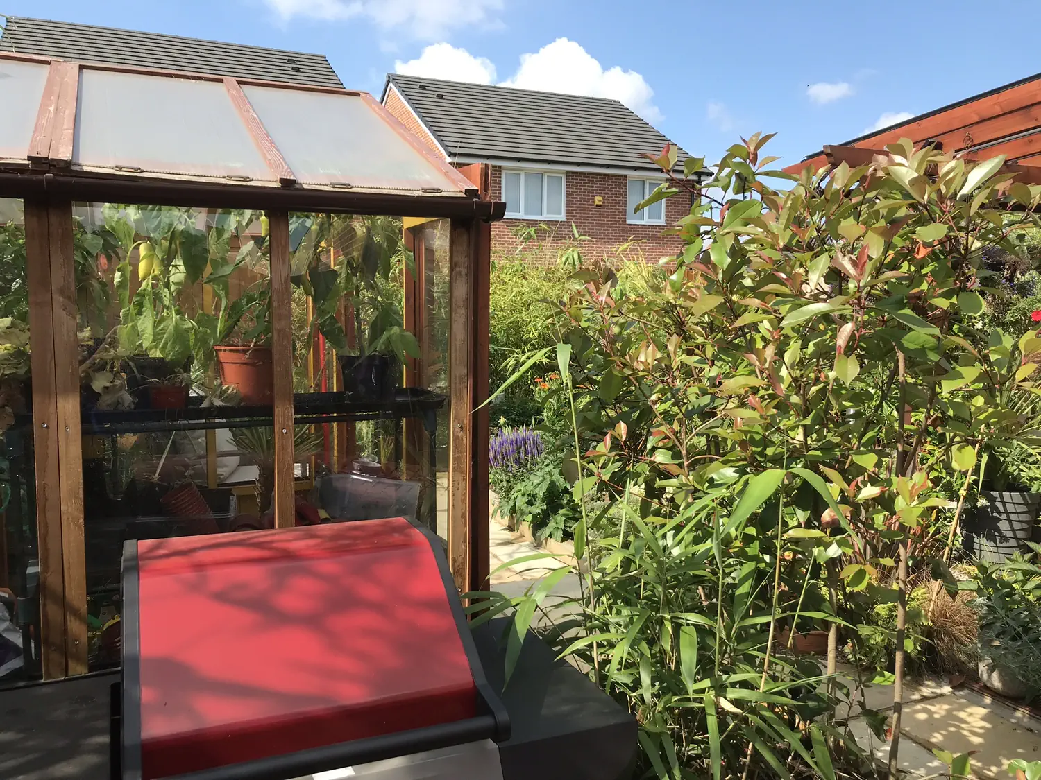 We had a major storm last Wed around 6pm, with gusts up to 120k/h and loads of rain. We’ve had a number of warnings for similar storms this year, but they all passed us by. So we didn’t take this one seriously enough, and the garden table and greenhouse didn’t survive. A leg snapped off the table, and the greenhouse was violently thrown into the trees along the garden border. Will noticed this during the storm, so he, Andrew and I rushed out to rescue the seven plants, three of which had been knocked out of their pots. We ran them up to the log shed and quickly repotted them, and happily, they’re all doing fine now. The greenhouse frame mainly survived, but the plastic cover is irreparably ripped. We were all soaked after being outside less than 2 minutes.