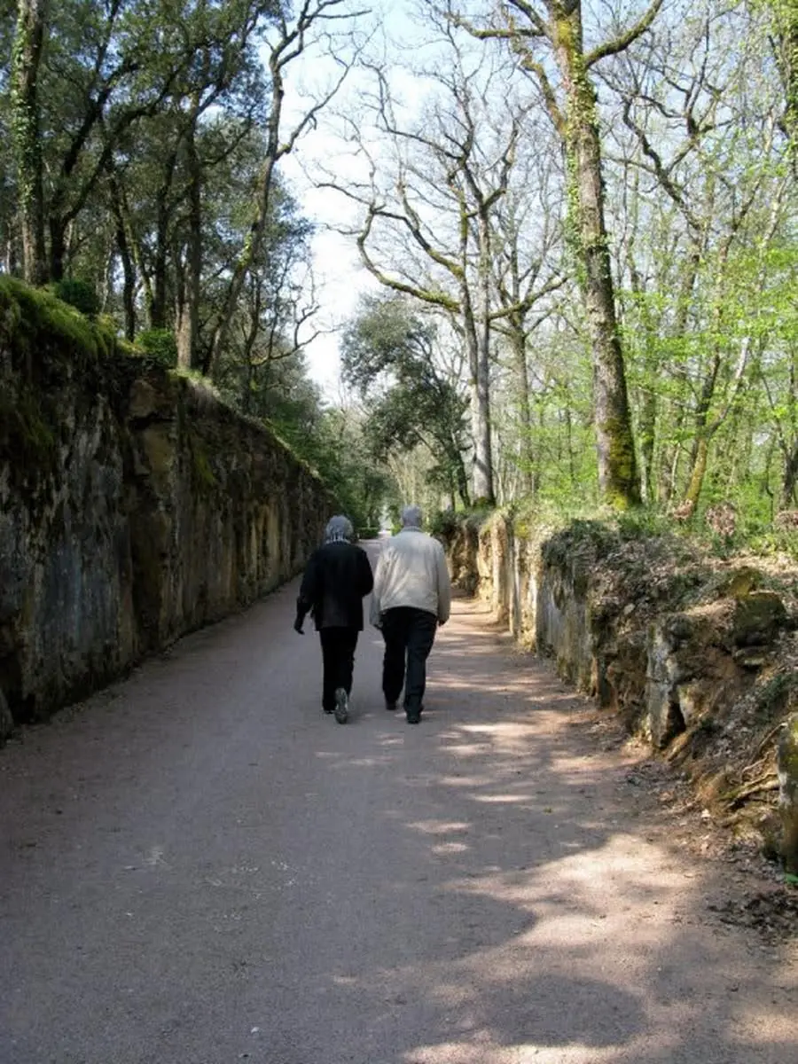 Our fist stop was the stunning little town of St Léon sur Vézère. Matt and I went there back in January and really enjoyed ourselves, despite having been told it would be 10 degrees and dressing accordingly, only to get there and find it was a mere 3 celcius. This time round though, it was a little cloudy but a pleasant 14 degrees. FAR better. We strolled around a bit, following the Vézère river for a ways and admiring the chateau, then stopped off for lunch al-fresco. We were all still bloated from the previous few days’ excess so made a point of only having the one course (pizzas for Matt and I and & omelettes for Chuck and Marilyn), served with the obligatory wine.