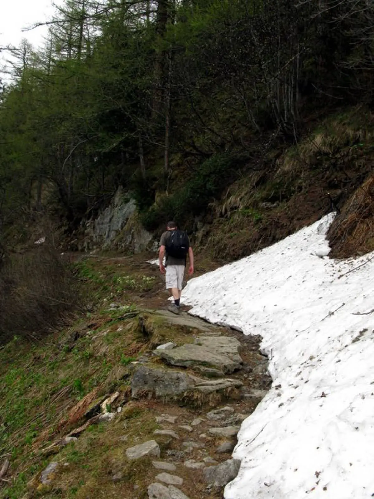 It was a fairly steep hike and just as the signs said, it took about 2.5 hrs to get to the top. We are in between seasons with most of the snow melted but we also encountered a few patches along the way. At one point, we had to walk through the snow for 15 metres (50 ft) or so, which was a bit frightening because one wrong step would have meant sliding down the snow with not much between you and the bottom of the mountain. Along the way, we passed only a few people, most of them French, wearing lycra and not more than 3% body fat on any of them. We, on the other hand, stopped now and then to curse the fact that we forgot to bring snacks (nuts and berries) and to enjoy a toke of mother nature.