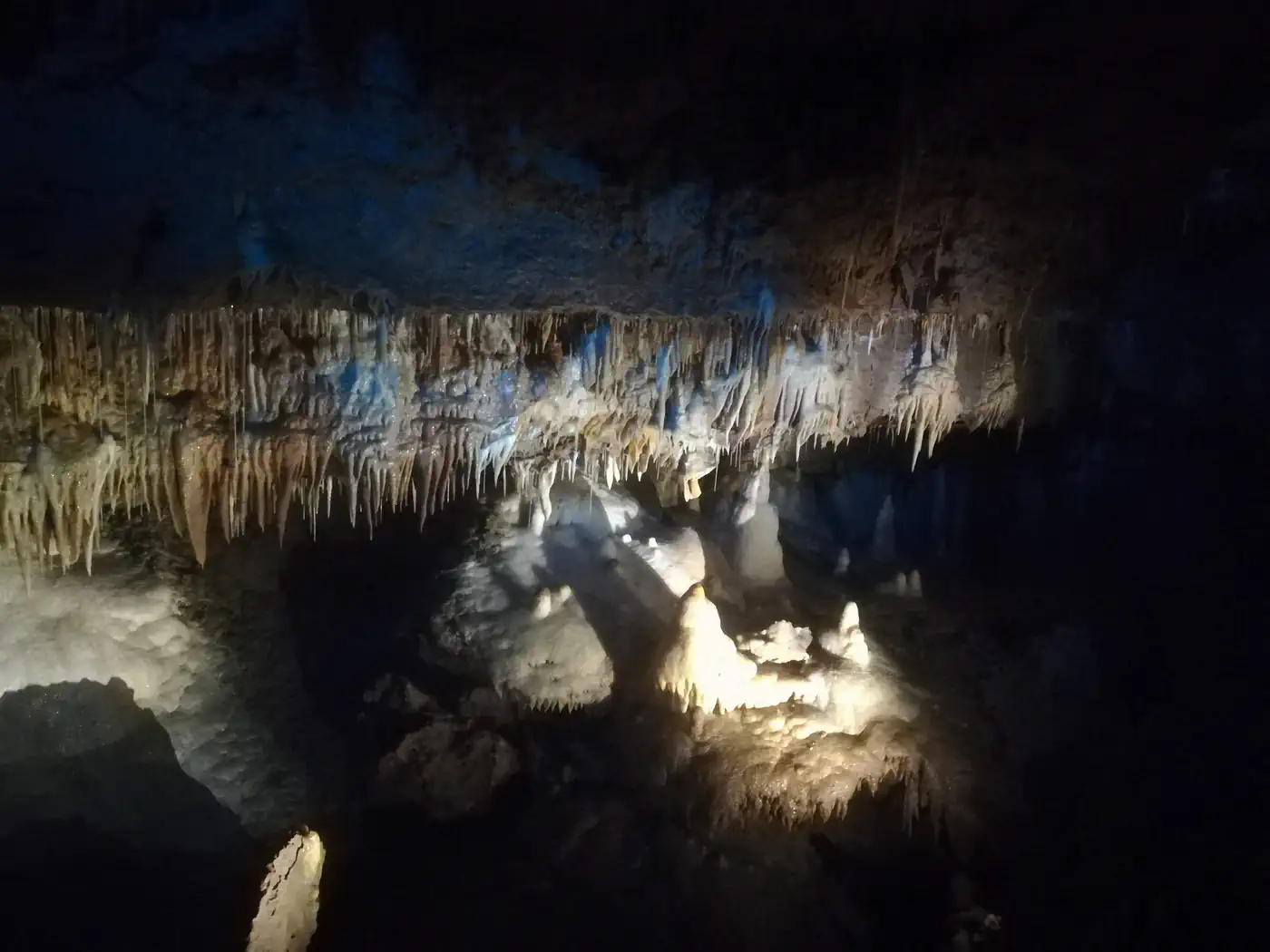 Since this was Dad’s second visit, we had saved up a few new places to see. On Thursday, we took advantage of a couple of local tourist attractions. First was the Grotte de Villars, a cave with both prehistoric drawings as well as an impressive collection of stalagtites and stalagmites. This is really the only major cave in the nothern part of the Dordogne; Lascaux and the other more famous ones are further south. What we lack in numbers, though, we make up for in splendor. The other caves we’ve visited have either drawings or interesting rock formations, but not both.