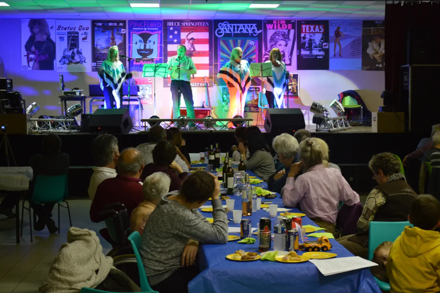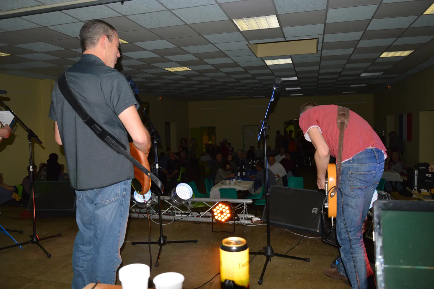 This was all happening while the first group played. It was Barry and his wife Carol, his sister Terry, and our neighbour Carol. They made a few small errors, but overall, sounded good and the crowd seemed to enjoy it. We started directly after them, around 9. The buffet had changed over to dessert, so people were going for it. With this too, there was just enough to go around, with one small plate of stuff left. The alcohol also held out, although they thought there wasn’t going to be enough red.
