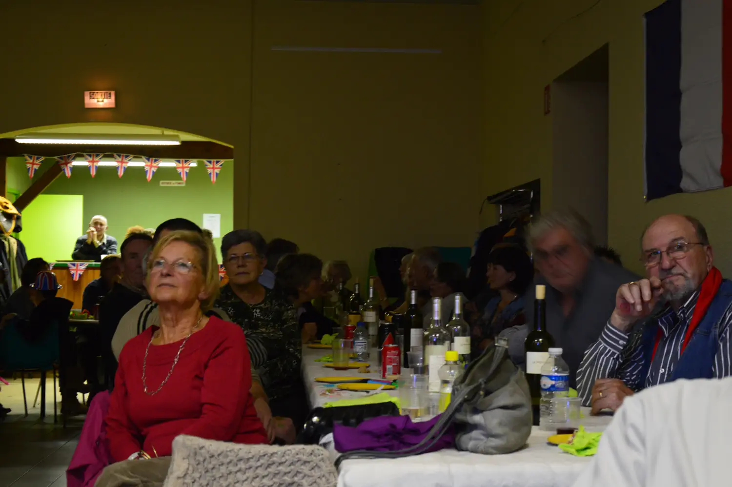 We finished up around 5 and headed home, showered, changed and headed back around 6:30. Will finally convinced the sound people that the problem wasn’t with our ipod, and they fixed the problem. Since this was the first year, we weren’t sure how many people to expect, and figured around 50 – 60. The place started filling up around 7:30, and shortly after, we started needing to put out more tables. In the end, there were more like 90 people, including a reporter from the Sud-Ouest, a regional paper in which we will be featuring. It was mostly local French people, probably 80% or more.