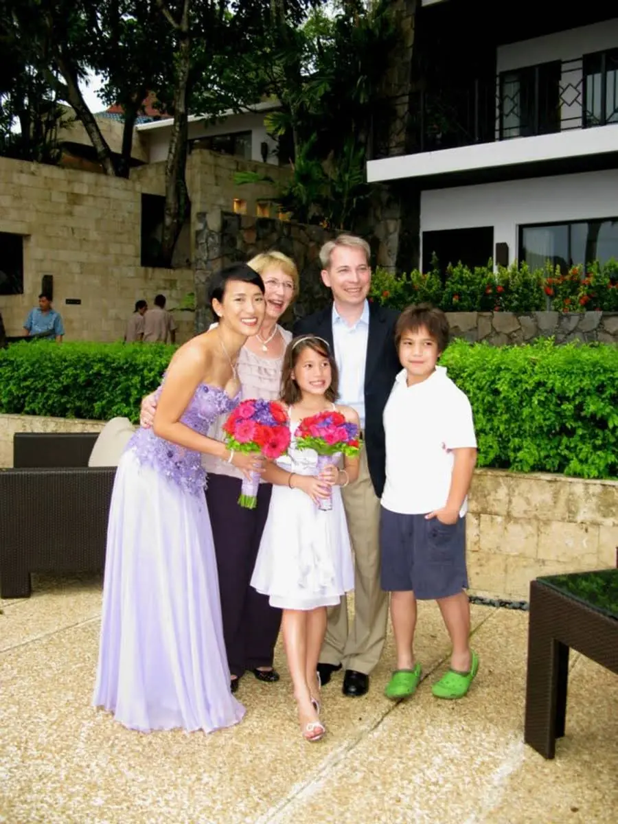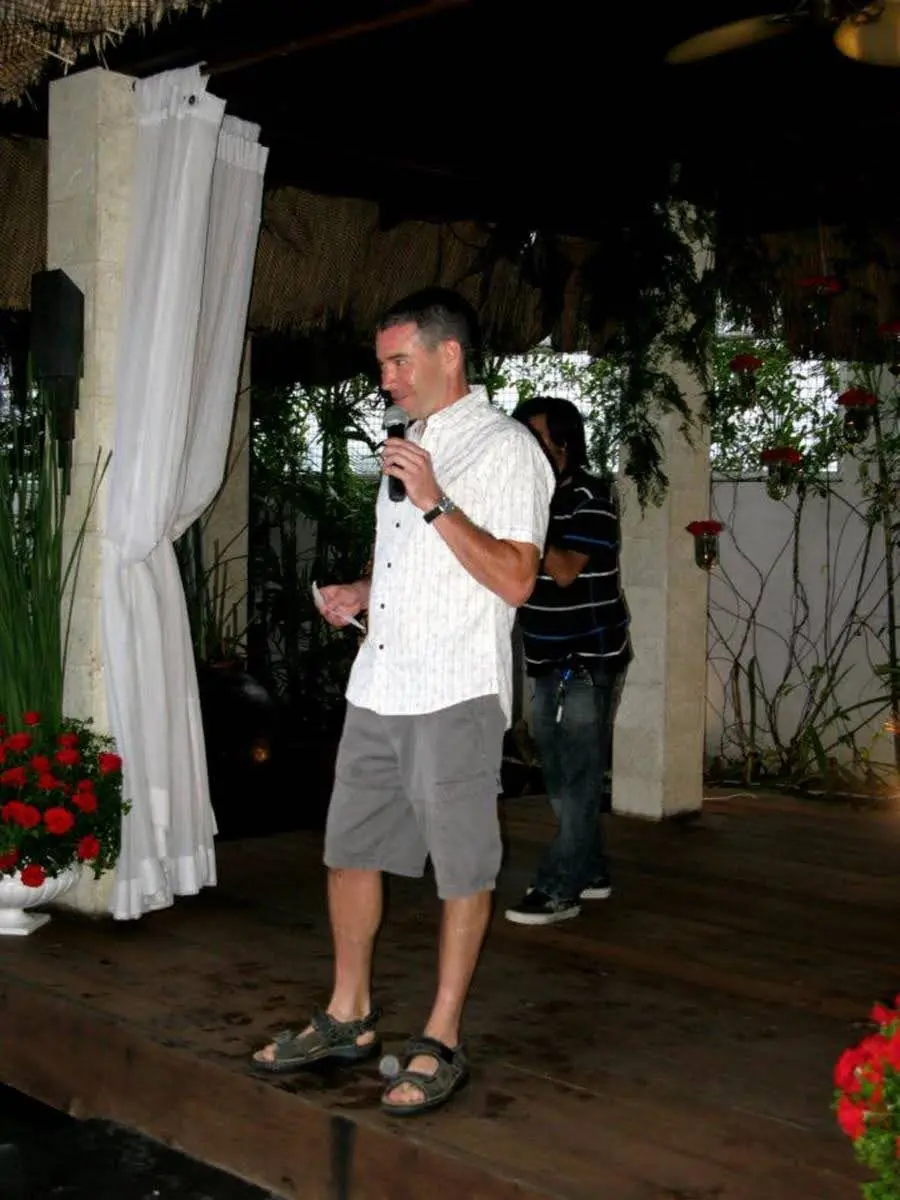 The wedding was on Saturday and we mainly took it easy during the day. There is another resort called the Shangri La just down the road and it’s more kid friendly so I joined Paul, Karmen, Carol and the kids over there for a bit of swimming. This was all very nice except that I didn’t wear enough sun screen and got a light burn on my arms. Will suffered a similar fate back at the resort and although he applied liberal amounts of sun block, still managed to burn his forehead and legs although neither of us fared too badly. The ceremony itself was at 4:30 that day and although it was raining hard only an hour earlier, it cleared in time. It took place poolside with the bride and groom under the central canopy and the guests gathered around. I was Paul’s best man at his first wedding and I still regret the toast I made since I was in a bit of cynical place at the time. So to atone, I made a toast just after the ceremony and I’m pleased with it, keeping it short but sweet. Champagne was served even before the ceremony started and afterwards as well along with mohitos and margaritas plus appetizers. We then moved up to the restaurant for a sit down dinner, accompanied by a red wine called “Chat & Oeuf” which appeals to my punny side (although it translates to “cat and egg”, if said quickly, sounds like “Chateau Neuf”, a renouned French wine). The entertainment was a live cover band comprising six people including a male and female vocalists who were both very good. The dancing started after dinner and there were a handful of us doing tequilla shots + beer throughout the evening so I don’t have too much else to report. The one thing I do remember is that after the party started to wind down, a number of us ended up in the pool, drinking champagne which was most enjoyable at the time.