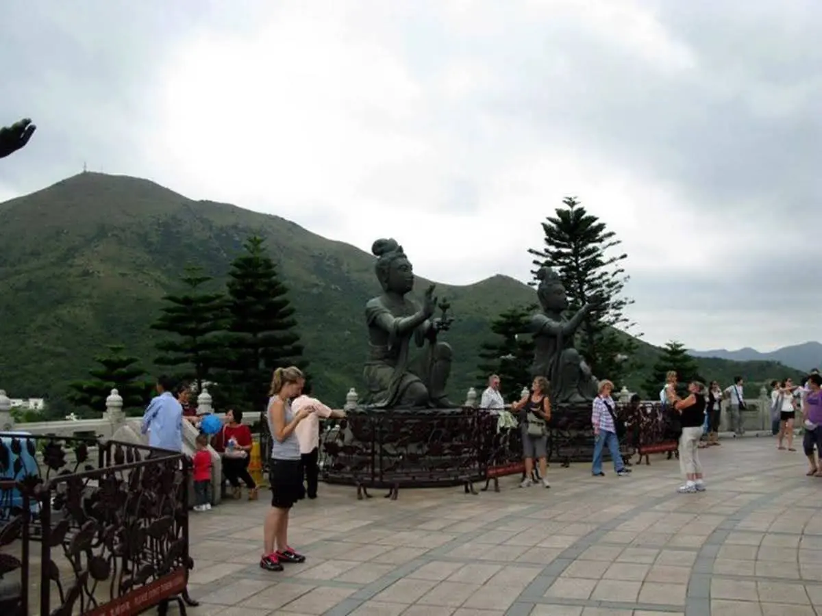 We awoke with sore heads the next day and it was all I could do to finish my Eggs Benedict. Our flight wasn’t until 8 that evening but thankfully, nearly everyone but us was able to keep their rooms so we didn’t have to go anywhere. Will and I lounged by the pool and after a nice lunch, felt a bit better but not well enough to go jet skiing again like Paul and Karmen did with the kids. The flight back was uneventful enough and we arrived back at our hotel in Hong Kong around midnight. The next day, Will and I did a bit of sight seeing, starting with a few street markets in Kowloon where were tried to find thank you gifts for our neighbours who were looking after the cats. Apparently, markets there are not like in France; we arrived at 11am and they were only just setting up so we wandered around for a bit and then took the subway to Lantau Island, famous for its Big Buddah statue and nearby monestery. It sits on top of a huge hill so you take a cable car from the subway terminus up there, enjoying some nice views along the way. Sadly, they built a very commercial faux village that you must walk through at the top so it detracts a bit from the message of austerity they were pushing in the monestary itself. Jacob mentioned that the monestary also has a restaurant that serves vegetarian food so we tried that and although it wasn’t the best meal we had, it was interesting and felt very authentic (not that I’m much of an expert on Buddhist monestary cuisine). It started to rain before we left so we took the cable car back but skipped the Victoria Peak tram as planned since we wouldn’t have been able to see much anyway. We stopped at a fancy supermarket near our hotel and got our thank you gifts along with a bottle of champagne to say thanks to our gracious hosts.