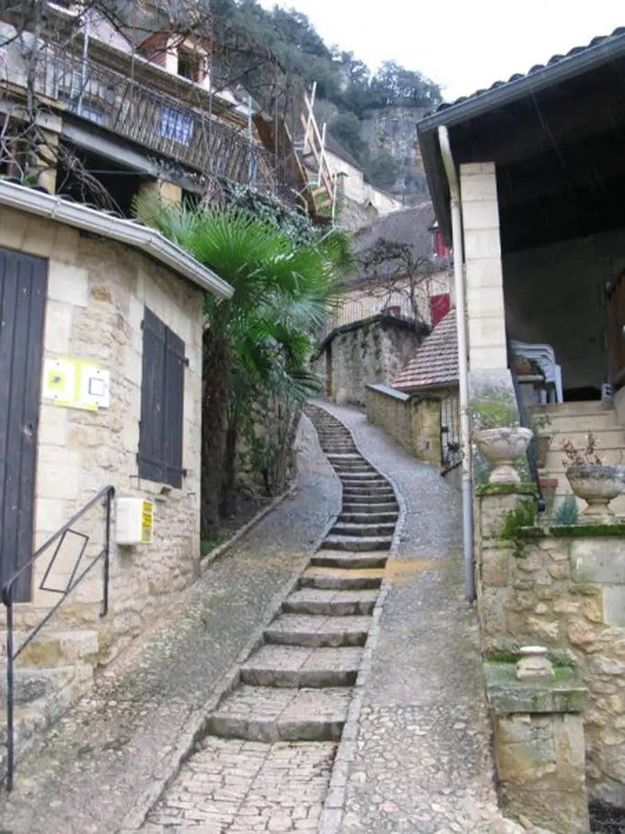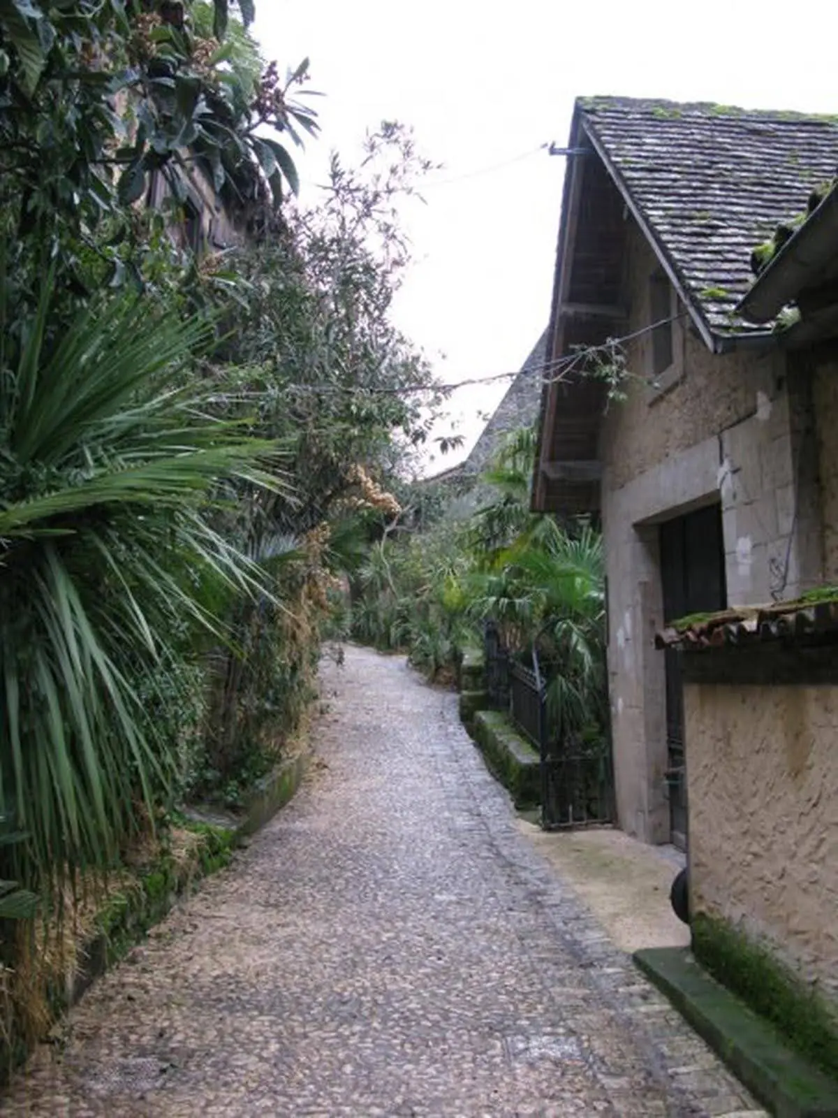 The forecast was for 8 degrees and cloudy so we weren’t really dressed for the weather, which was quite a bit colder. We had planned to visit three other villages but it started raining after lunch so we only made it to one of them. It’s called La Roque-Gageac and it’s built into the cliffs bordering the Dordogne river. It too certainly earns the “prettiest village” moniker, even in the rain. As is typical for this time of year, we seemed to be the only two people in the entire town. It has a chateau at one end and a medieval fortress in the centre. Along one of the walkways was a “jardin exotique” which has all sorts of palms and tropical plants and seemed really out of place to me. I’m looking forward to seeing the other villages when the weather improves a bit.