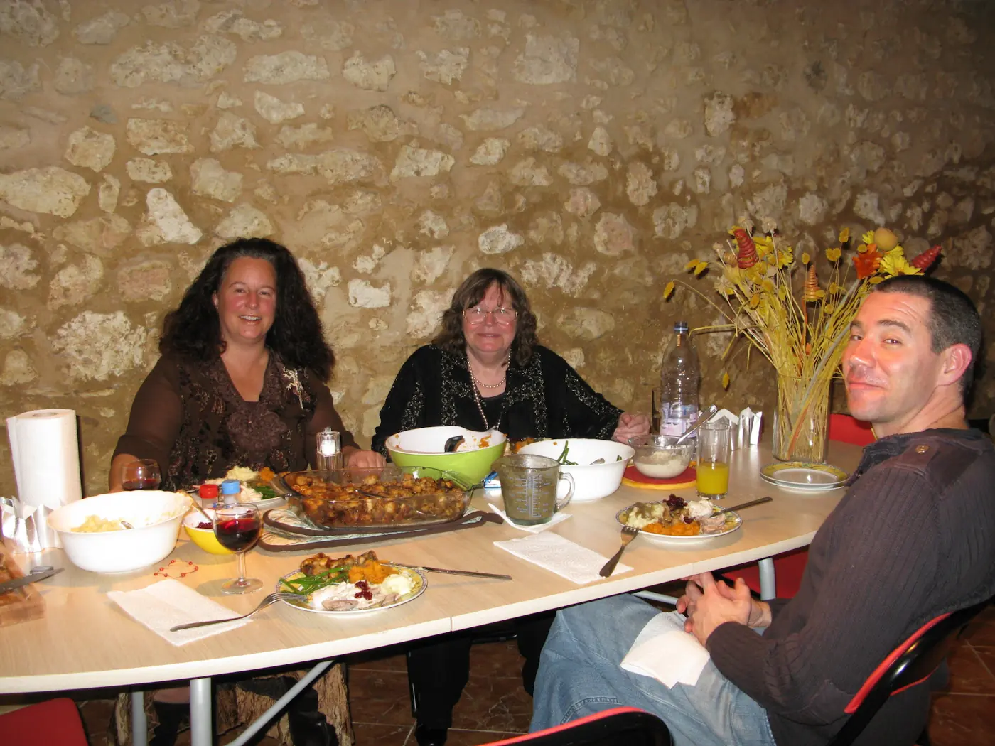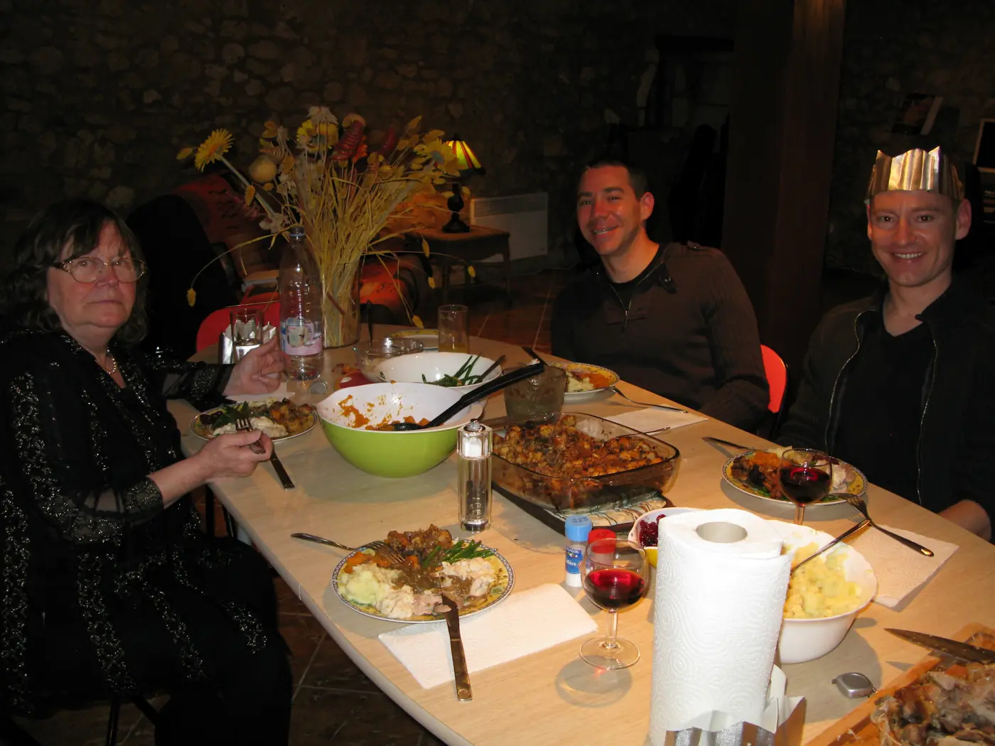 Babette left around 10:30 and then we hung out with Sharon, playing some poker but mostly just drinking wine and setting the world to rights. We celebrated the harvest in an alternative way as well, which meant that we were hungry for cheese around 1 am. Sharon brought over a lovely selection on which Will will elaborate later. We were up till nearly 4 am so we’re all feeling a bit rough today. We just got back from a nice walk in a remote area very nearby and are looking forward to tucking into the leftovers later on.